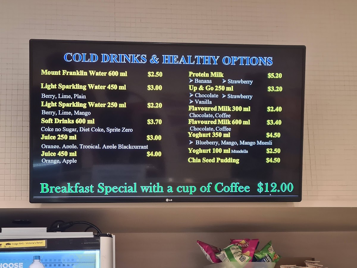 Victoria's Cafe also caters to your hydration needs, offering a selection of cold drinks, including flavored milk and assorted juices. With long operating hours until 7:30 PM, it’s a convenient stop for any time of day, promising great food and friendly service.